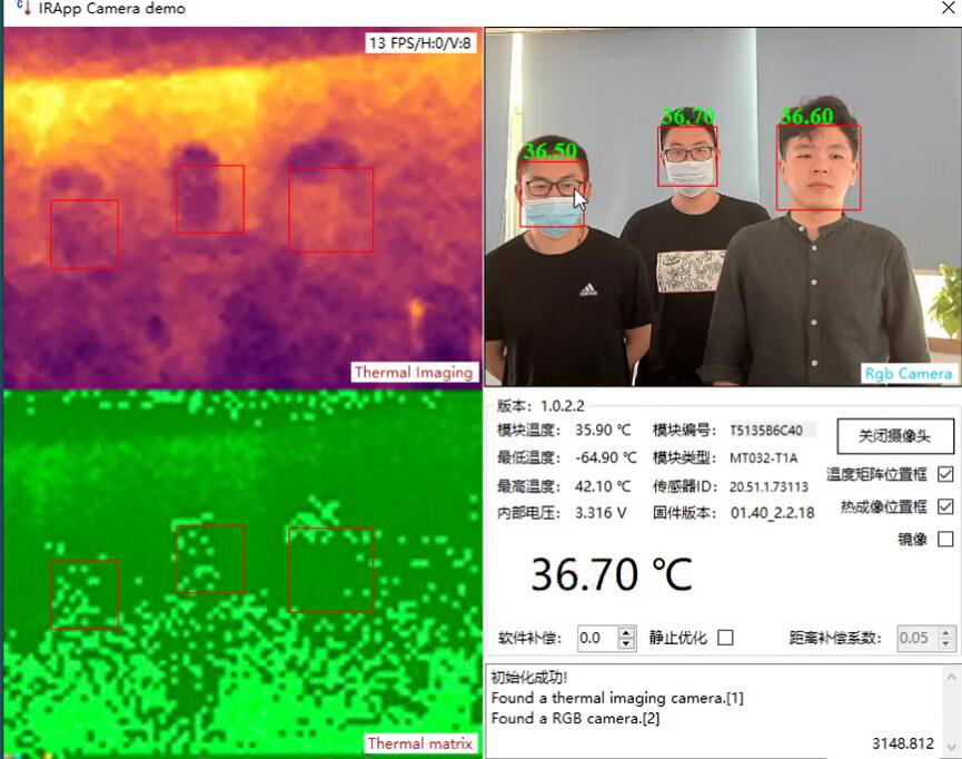 在人臉面板機(jī)上獨(dú)立安裝測溫模塊,實(shí)現(xiàn)人臉識別多人及快速測溫。