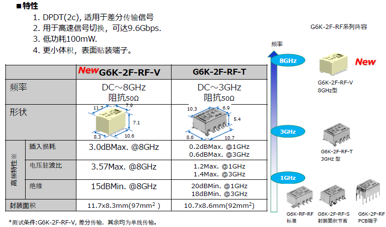 2、產品的高頻特性G6K-RF-V能達到穩定(優秀線性)插入損耗。
