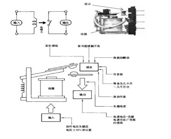 向線圈施加輸入電壓, 使其發生電磁力, 移動可動鐵片, 從而切換接點。不僅可在控制