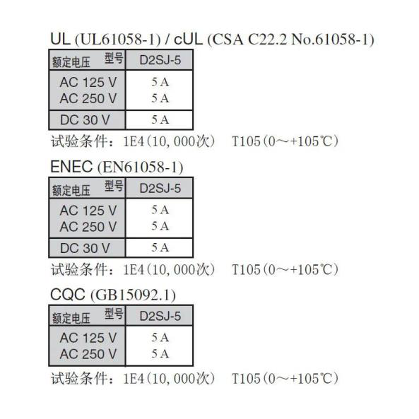對(duì)歐姆龍而言,安全向來重要。歐姆龍D2SJ的額定電壓、額定電流均達(dá)到中國(guó)CQC、北美UL和歐洲ENEC的安全標(biāo)準(zhǔn),并全面落實(shí)中國(guó)、北美和歐洲GB15092.1、UL61058-1、EN61058-1要求的指標(biāo)。值得一提的是歐姆龍D2SJ在DC 500V時(shí),絕緣電阻可達(dá)100MΩ以上,電阻阻值越大,流過它的電流越小,故使用起來也就越安全。
