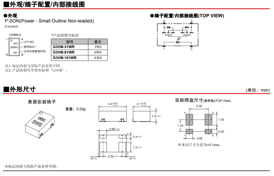 G3VM-31/61/101WR 光敏半導體MOS FET
