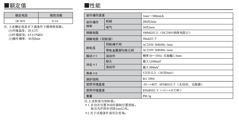 采用按鈕動作式的歐姆龍超小型開關 歐姆龍超小型(高6×寬8×深4.2mm)、輕量(約0.3g)、3mm的長行程。 由于是滑動方式,所以短路、非短路的切換時間可根據使用用途進行選擇。