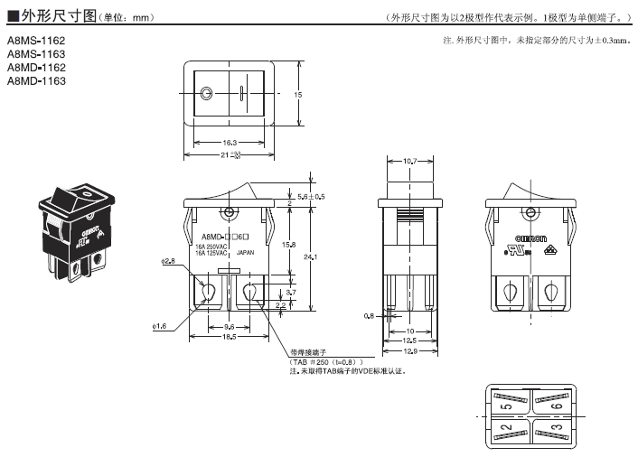 A8M 系列船型歐姆龍開關(guān)