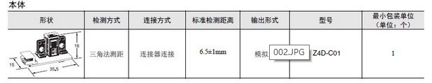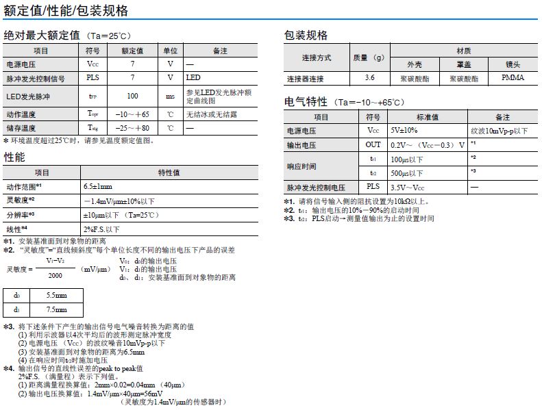 ±10 μm的高分辨率,適用于檢測紙幣、紙的重疊輸送或偏轉量。 利用除法運算,檢測物體顏色等反射率變化的性能好。 標準檢測距離(動作范圍) = ± 6.5 ±1 mm。